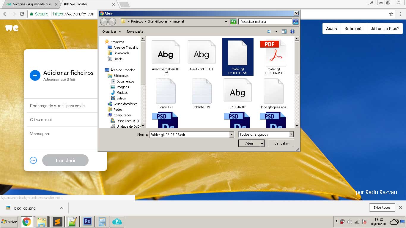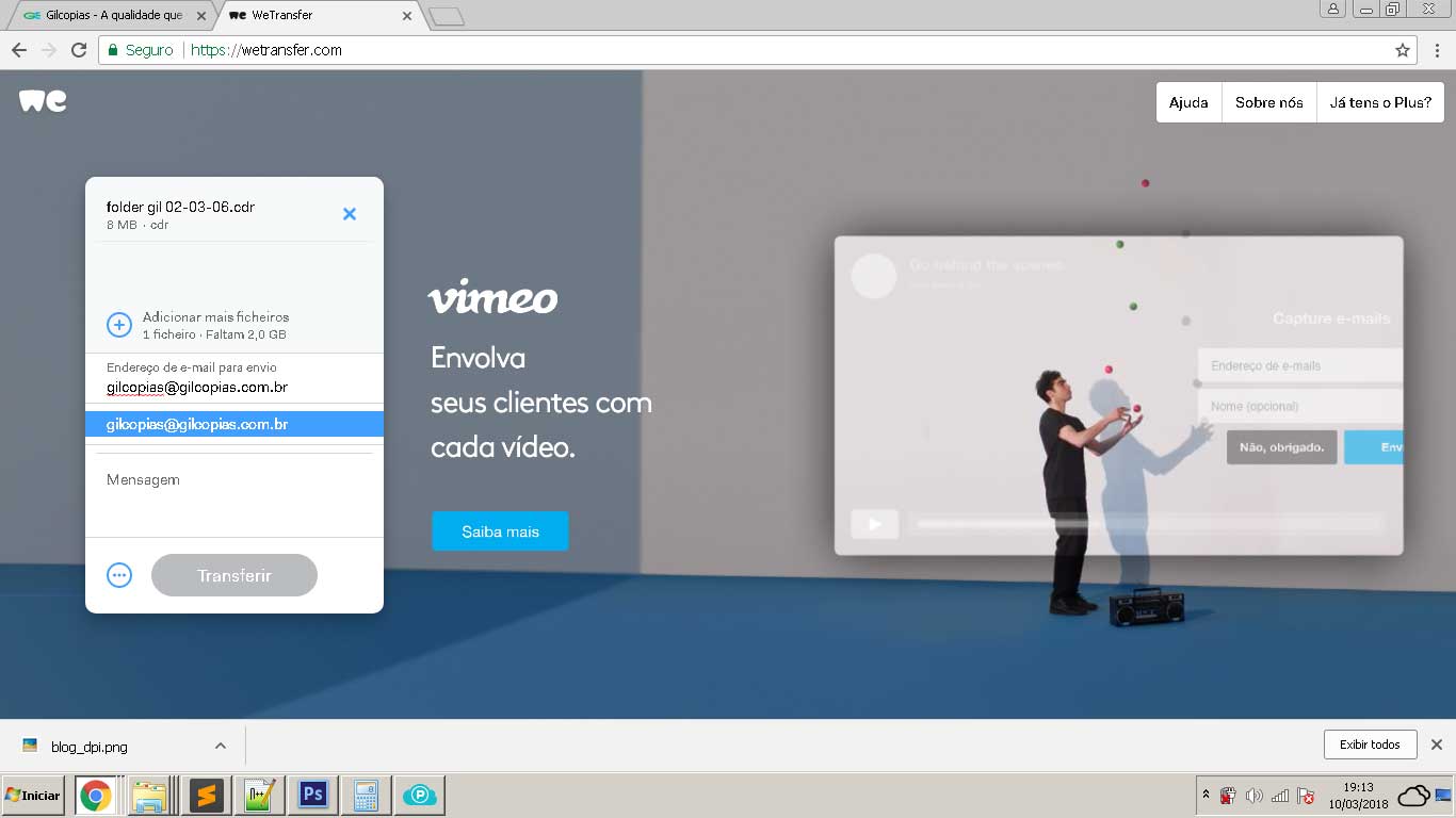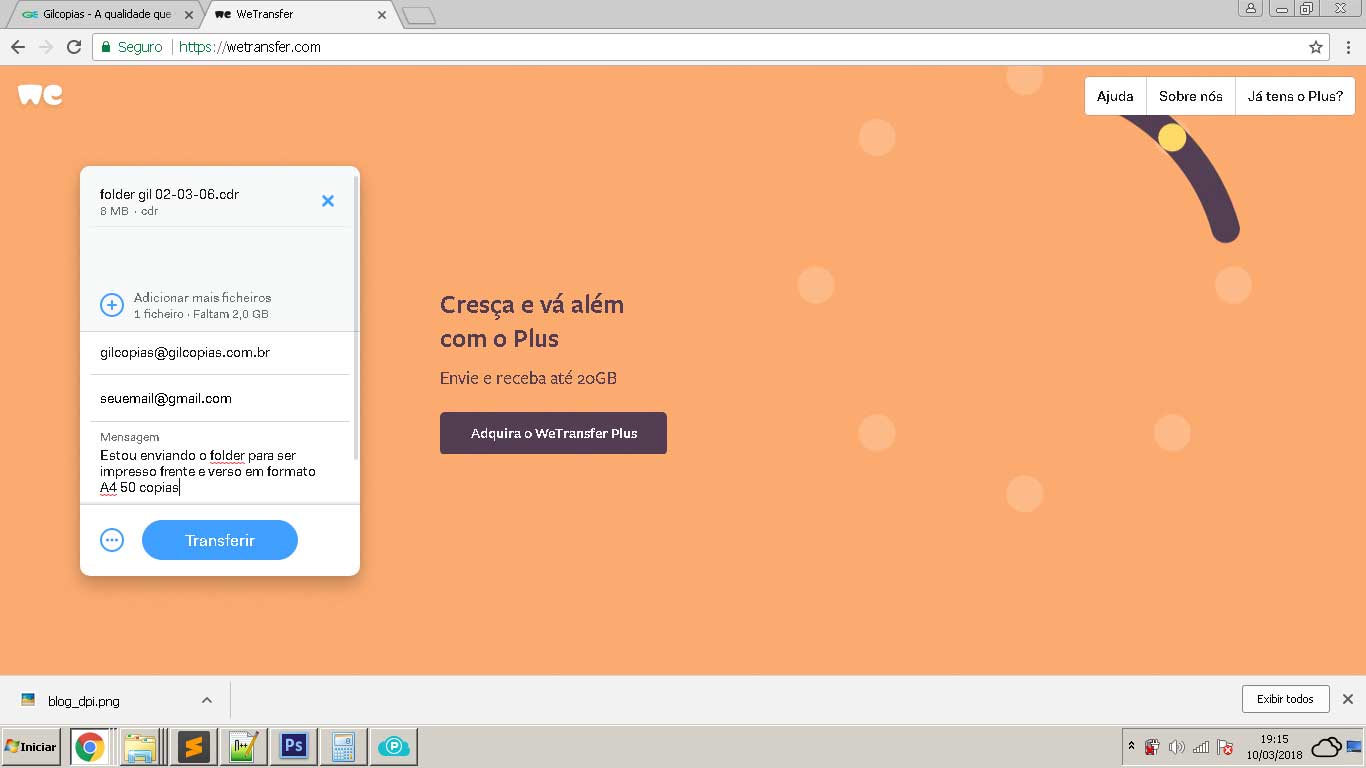 A Gilcópias utiliza o serviço gratuito do WeTransfer para receber seus arquivos.