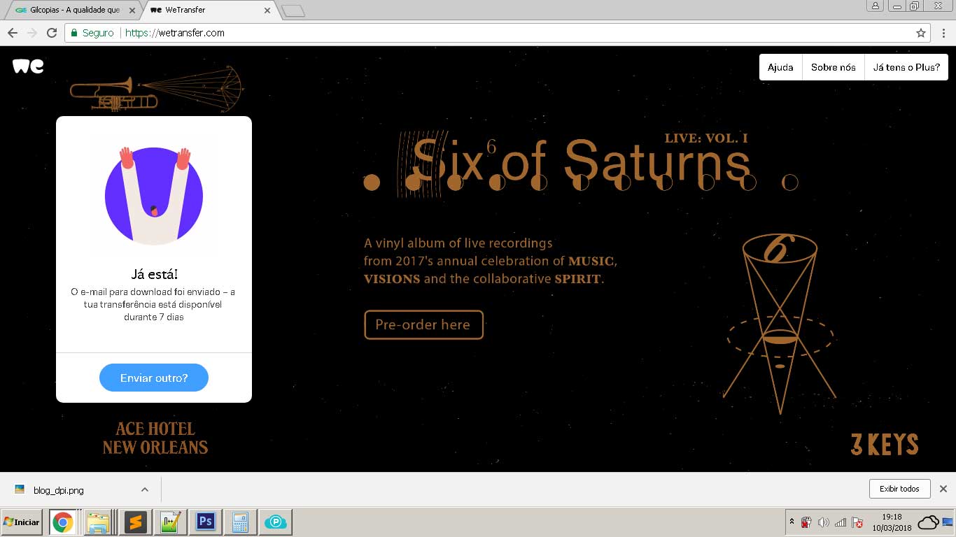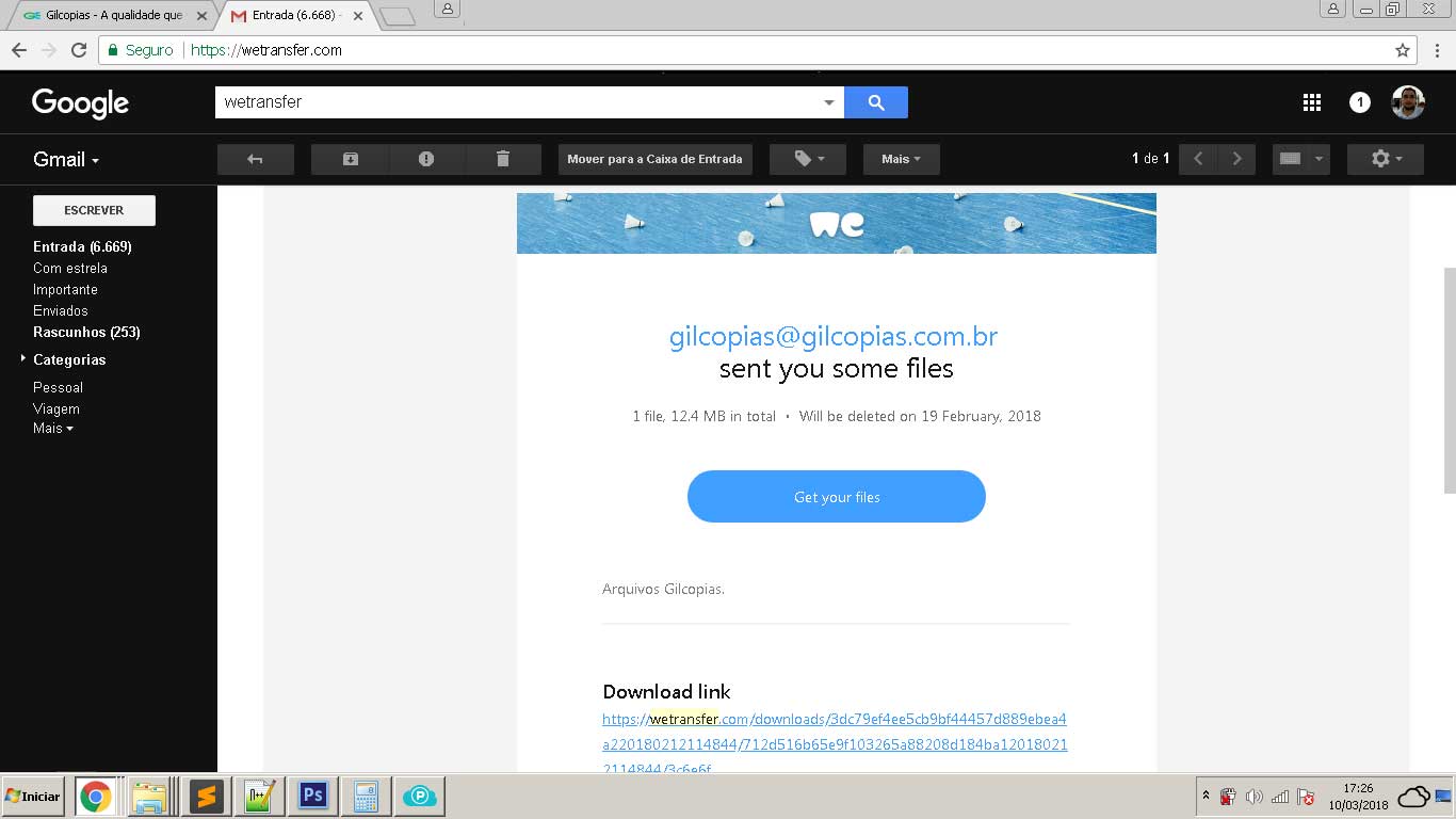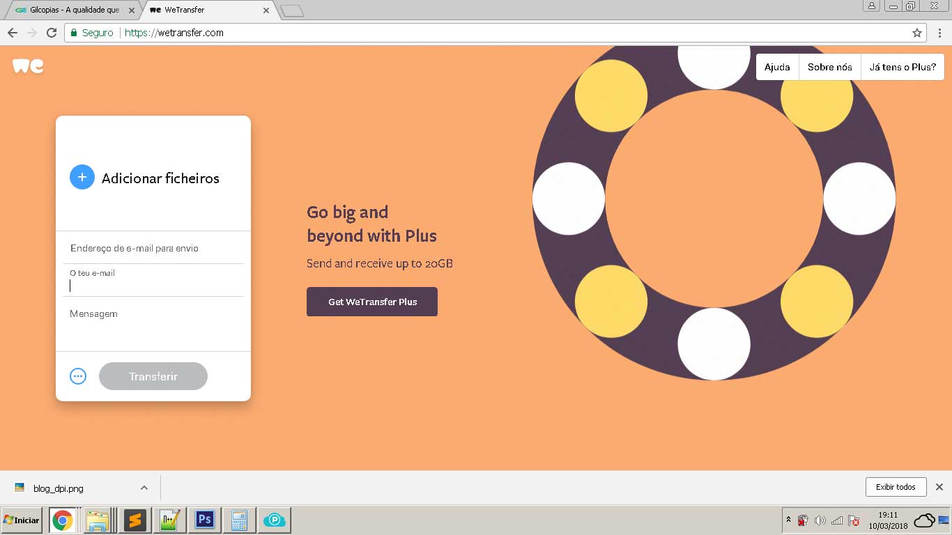A Gilcópias utiliza o serviço gratuito do WeTransfer para receber seus arquivos.